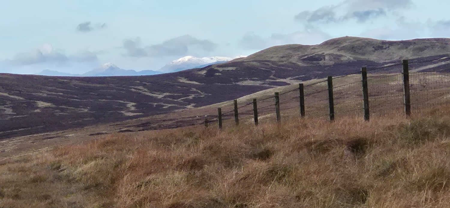 Across the 300m height and yet again a change underfoot, gone was the pleasant grassy track and we were now well into the deep tufts of grass and areas of sphagnum moss so common all over the higher ground of the Campsies, as are the fencelines that criss-cross the hillside. And it was now a matter of plodding along beside a fenceline, or cutting diagonally towards a fenceline as we made steady progress up the gentle slopes heading towards the as yet undistinguishable minor top as it blended into the open hillsides ahead. Eventually we met and joined the main track I mentioned earlier for those make a direct ascent to Earl’s Seat, and it was along this we wandered for the final kilometre to the cairn marking the 508m high summit of Dumbreck.