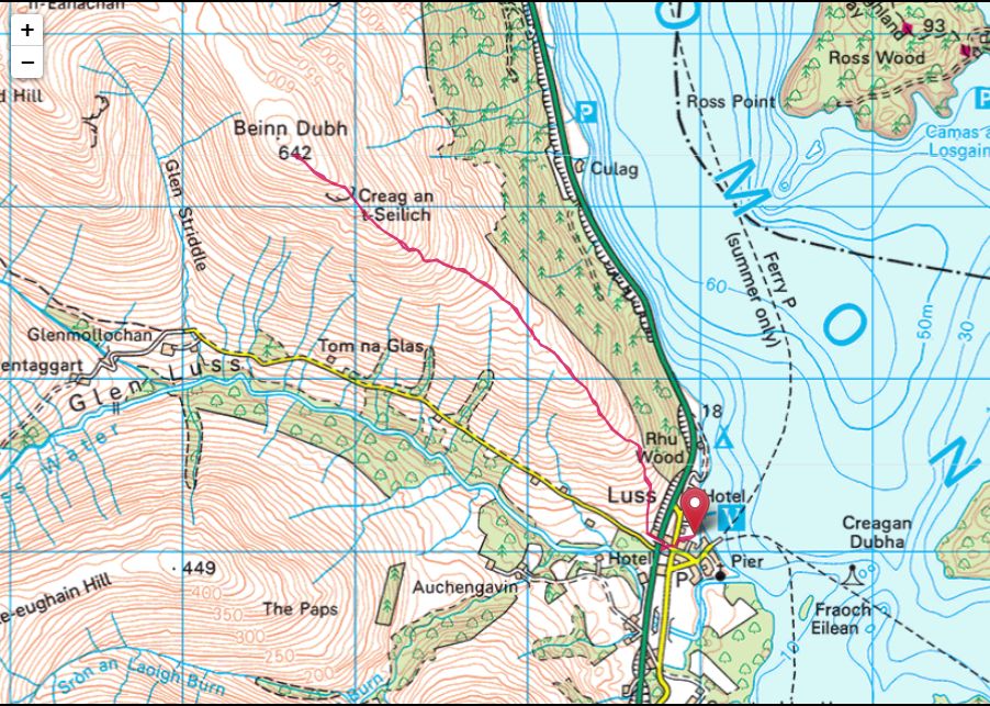 A fine day was forecast, and so I left Luss early and did not see another walker as I took things extremely easy on the ascent and had the summit to myself for the start of my break. However, by the time I was ready to head back down others were beginning to appear, a few stopping, others passing right by on their way to Mid Hill. An easy descent, with the hill becoming a littler busier, but I was soon back in Luss feeling happy with my solo day in the hills.