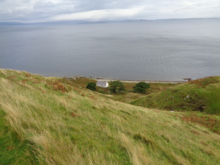 The anticipation started as we crossed the open moorland above Glen Chalmadale on a track which just oozed of past footsteps treading the bleak hillside, the track, just wide enough for a small cart contoured the hillside and descended towards the early 18th century dwellings at Laggan. Here, amongst the walled sheep pens, lies an old cottage, doors and windows now blocked with stone, but on close inspection, an obvious dwelling place of those who occupied this area before the clearances, when upwards of 100 people involuntarily left this strip of coast and boarded ships for Canada. This was my first surprise, having read a number of books on the clearances, Arran, as far as I can remember, has not featured in any of them. I was quite surprised to find that in excess of 400 inhabitants of this most southerly of the islands had left for Canada in the early 19th century, and are actually commemorated in a beautifully constructed memorial at Lamlash, raised by their descendants now living in Canada.