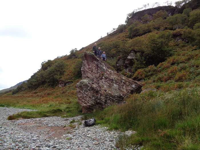 The walk takes its name from the next geological feature on the route "The Cock of Arran", a large sandstone boulder which, before erosion destroyed its head, looked like a strutting cockerel when viewed from off-shore, and, apparently was used as a visual navigation point by local fishermen returning along the coastline. Today, it offered us the chance of a short scramble to stand on it's shoulder and survey all around us.