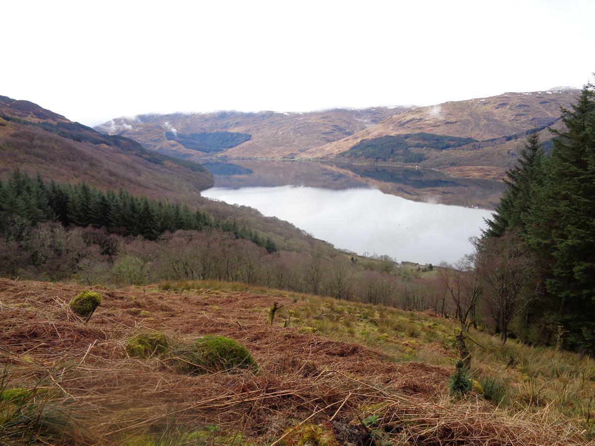 Beyond the cottages of Lochgoilhead we picked up the good forest track which gradually climbs from shore-level, up through the forest to around the 300m height; although we were to leave it shortly before its high point, and head up through a break in the forest on a lesser, but obvious track, crossing over onto the open hillside on the western slopes of Beinn Reithe.