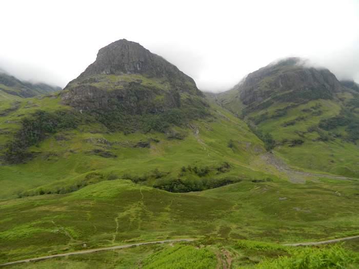 As we parked near the old Heli-pad in the car-park at the Pass of Glencoe, the rain and low cloud heralded what was ahead for the remainder of the day. Never-the-less, this was Glen Coe, and nothing, walks or weather, is ever easy from Glen Coe. It was even difficult getting out of the car-park, as 4 or 5 busloads of tourist arrived and filled the car-park with camera wielding happy-snappers, so we had to fight our way through them just to get onto the track leading down to the footbridge by the Meeting of Three Waters to begin the climb up through the ravine leading up to the Lost Valley.