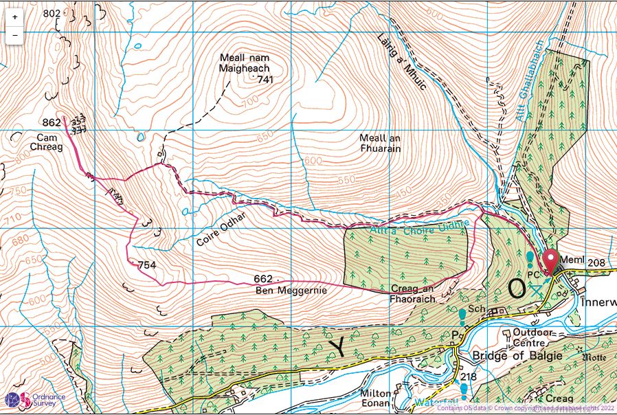 A mile east of Bridge of Balgie the Meggernie Estate car park provides the ideal starting point for the two Corbetts that flank the Lairig Ghallabhaich and the Drovers track from Bridge of Balgie to Loch Rannoch; today, we were heading for the western most Corbett, Cam Chreag.