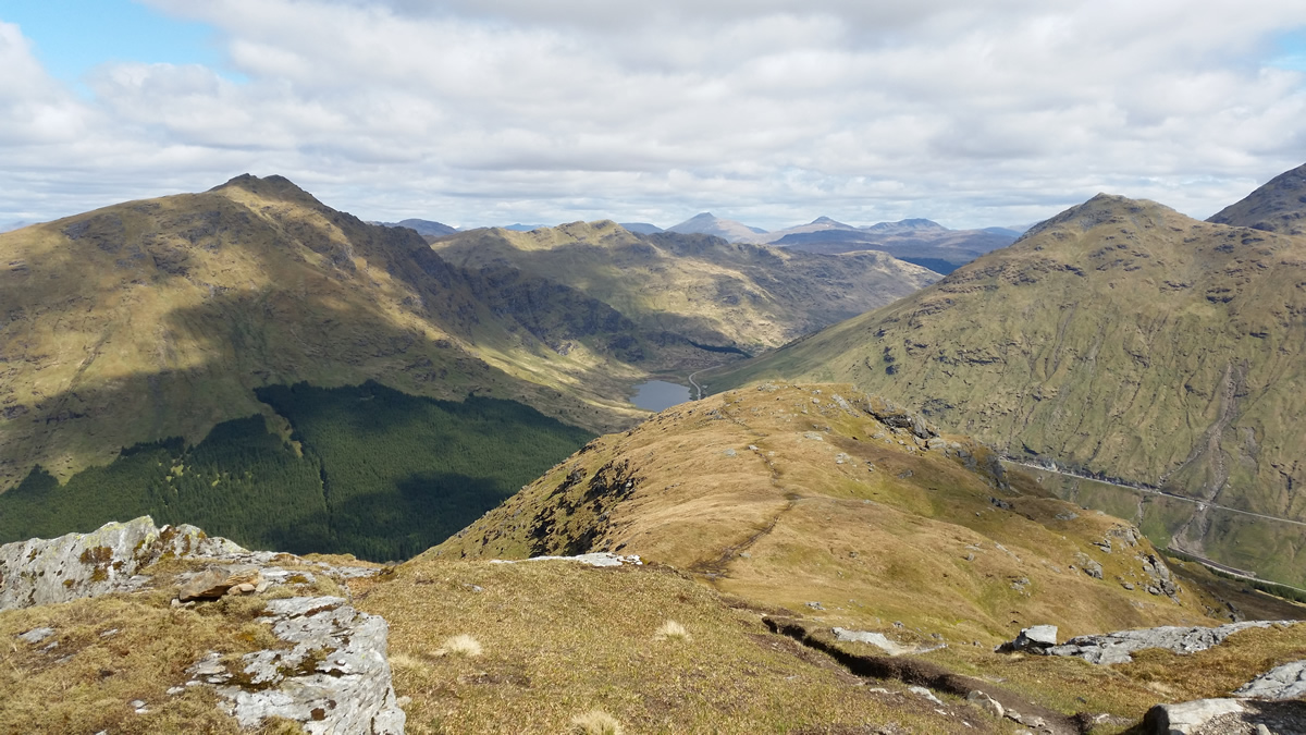 I was keen to follow in their footstep, and so gathered some "willing" companions and, picking a fine weather day, set off for the standard ascent of Ben Donich, which was accomplished in dry, bright, if not a little cool conditions with a leisurely lunch in a sunny spot where it felt positively warm out of the cool wind. Lunch over, it was time for us to take a new route off the summit of Ben Donich