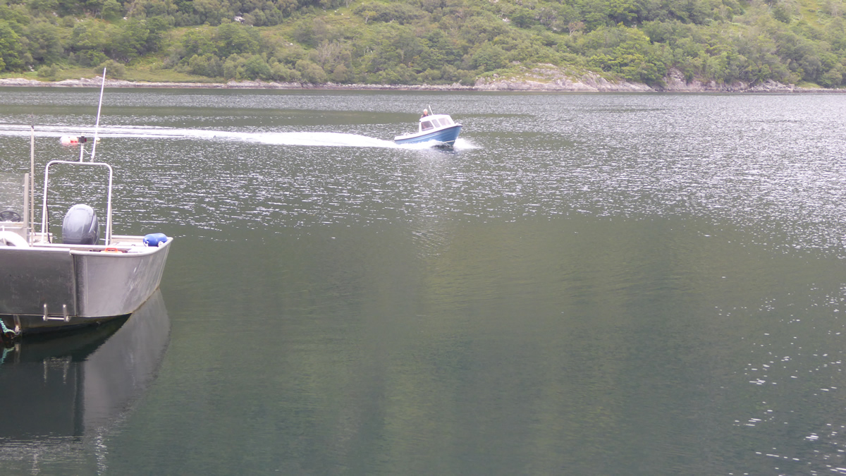 We made it to the jetty at 3.30pm and were relieved. We watched cormorants diving and spotted two herons, and though we were disappointed not to have had views, the hill is very interesting and we enjoyed our day. On the way back to Barrisdale, Peter spotted splashes in the water to the west, and turned the boat towards the activity on the water, asking if we’d like to see the dolphins. Well, what a treat we had. The pod must have been 100 strong he said, and we watched the dolphins jumping right out of the water and swimming alongside and around the boat. They are delightful creatures and enjoyed “playing” around the boat. How lucky were we. My photo evidence is pretty poor, but we felt very privileged to have seen the dolphins, and felt this end to our day made up for no views. Perhaps I’ll go again one day, and I can’t say that for many of the other Corbetts we have climbed.
