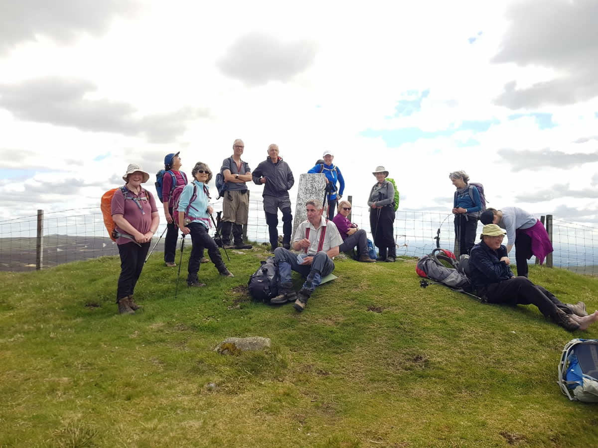 In just less than a kilometre we left the “pipeline” track for a good hill path which climbs in a generally easterly direction up the easy slopes of the broad grassy ridge which could loosely be described as the north ridge of Dumgoyne, which, once gained, at about the 250m height, is then a steady ascent towards the distance, but very distinct Dumgoyne, directly ahead. Along the way, we diverted a few metres to a fine spot on the upper reaches of the Machar Burn where a leisurely morning break was taken.