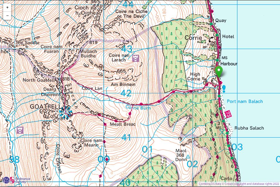 Goatfell can be approached from a number of routes, and we opted for a good circular one, from the village of Corrie, via Meall Breac and returning over North Goatfell and down Coire Lan.