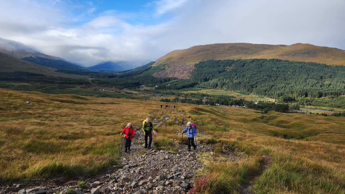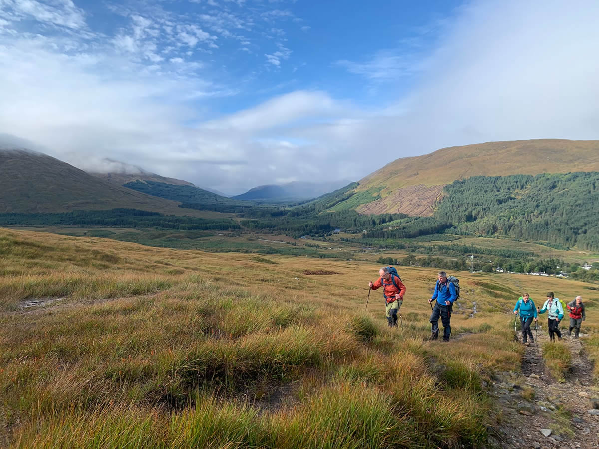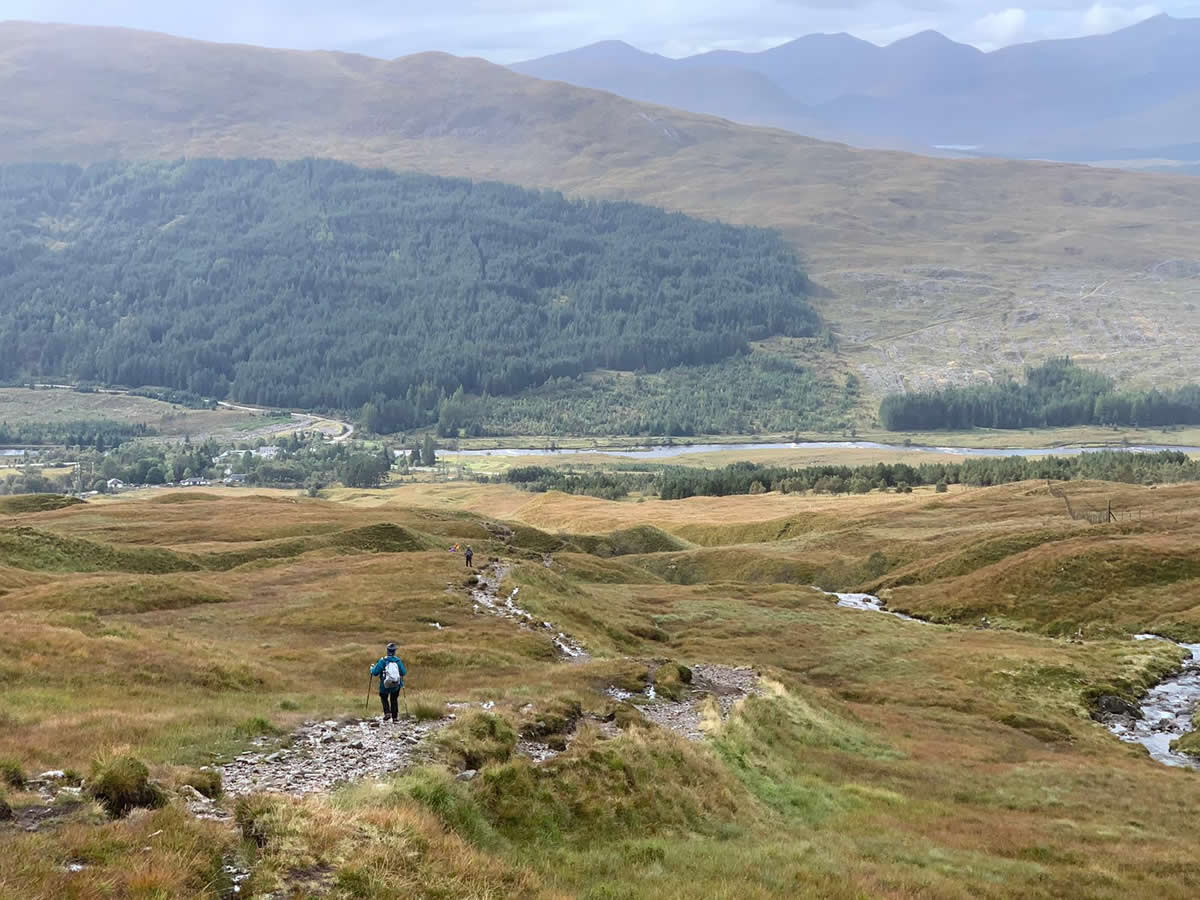 The scheduled walk for our group for today was Beinn an Dothaidh, but the weather forecast mid-week was not at all encouraging, wet, windy and getting very cold. So I had decided to travel with Mike as arranged to Bridge of Orchy, but would give Beinn an Dothaidh an miss and make for Ben Inverveirgh, at 639m and with a good start along the West Highland Way a less challenging hill for a bad weather day. However, as they say, “the best-laid plans of mice and men” etc, and it was all change by the time we arrived at Bridge of Orchy, the weather was fine, the company, as usual companionable, and so Beinn an Dothaidh it would be.