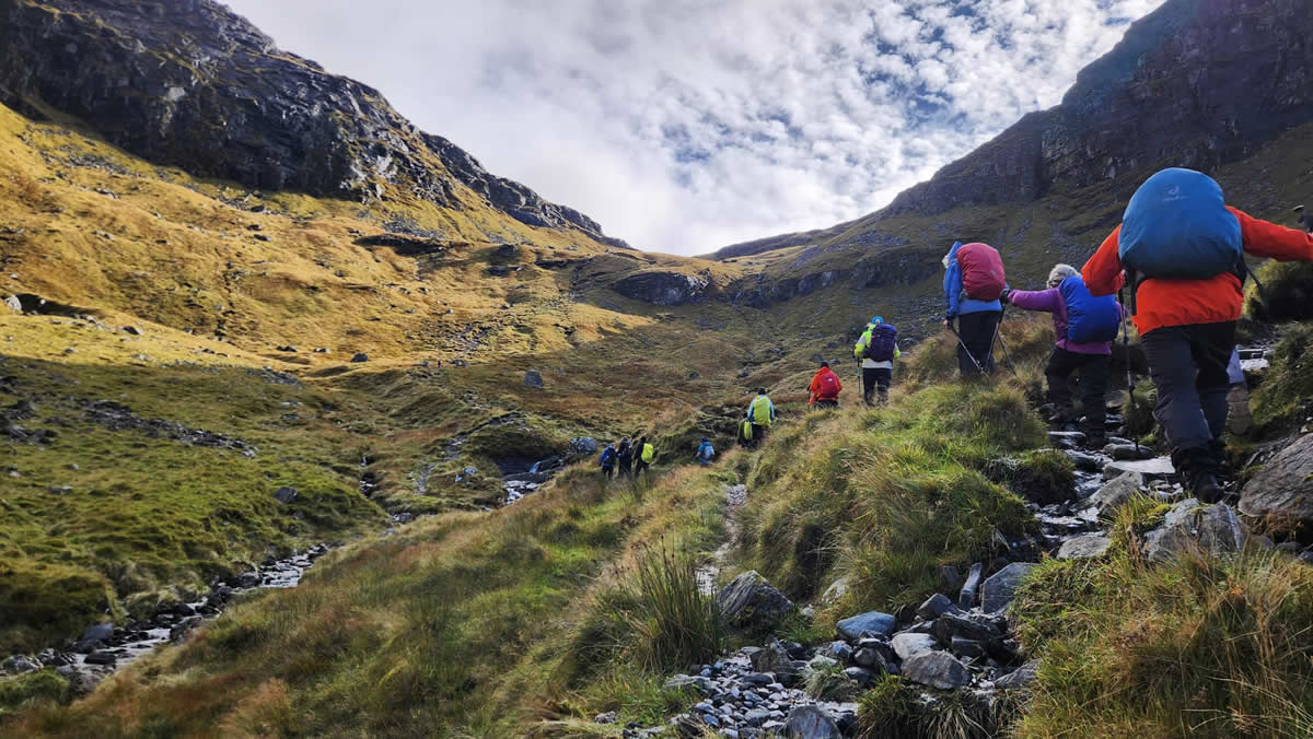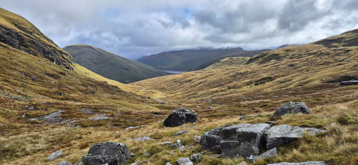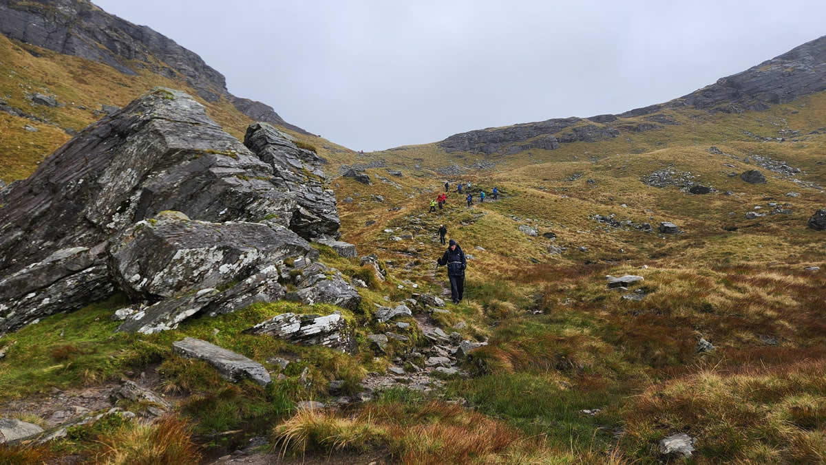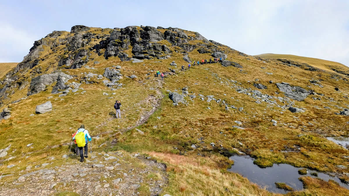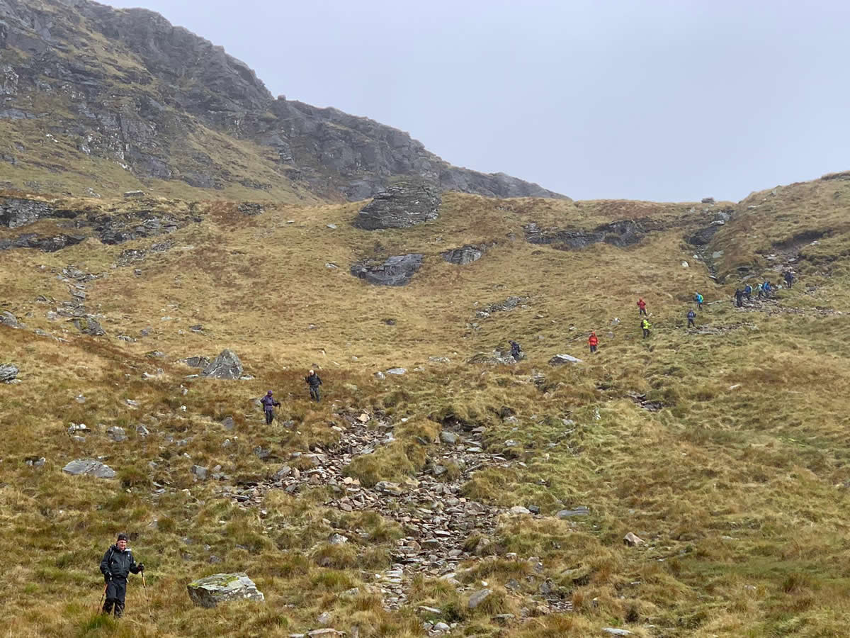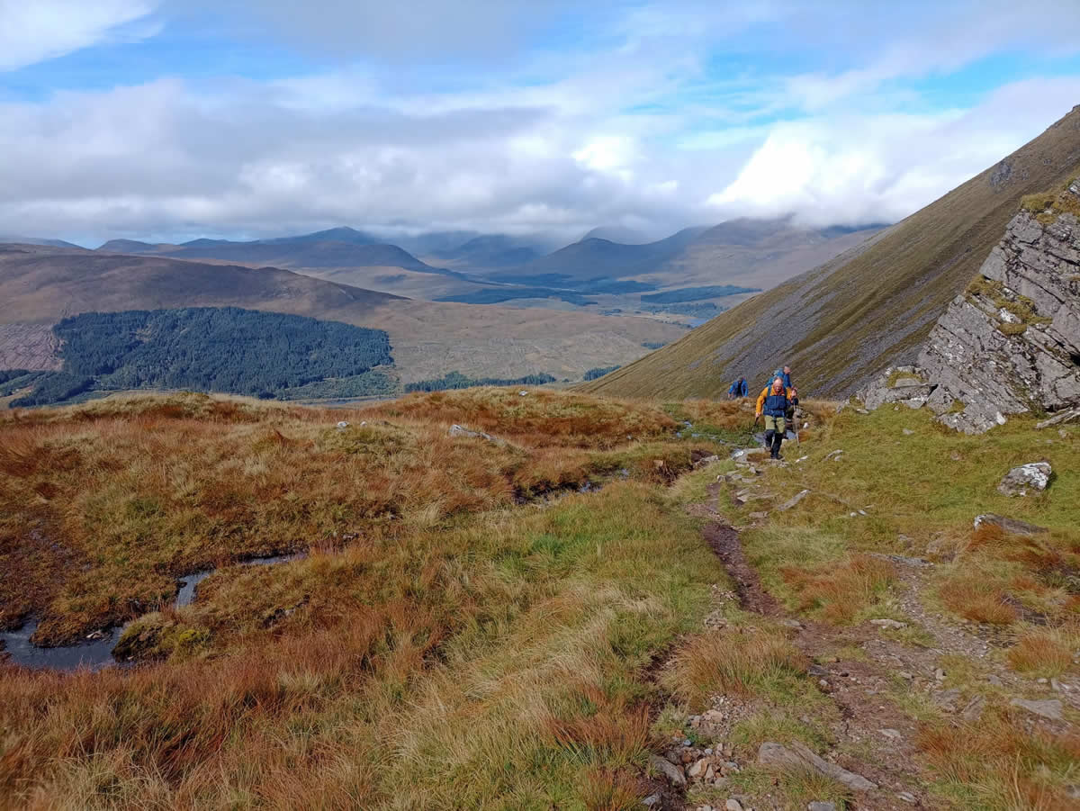 Nothing had changed since July last year when Ian and I last made the climb, the easy climb out from Bridge of Orchy is still deceptive, as the rough track leads onwards into Coire an Dothaidh, sometimes rough loose rock and stone, sometimes soggy grass and boggy sections, the terrain is ever changing, but never seems to ease, the dips down to cross the minor burns running into the Allt Coire an Dothaidh cause no problems, except that you have to climb out again on the opposite side. But, this is a great hill, and the challenges are well worth it, once on our way I was so glad Ben Inverveigh was just a passing thought.