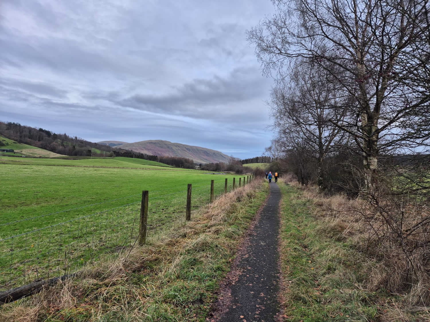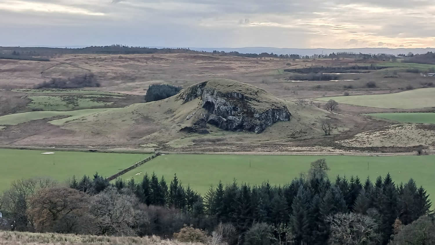 Across the main road, it was just a few hundred metres to the Strathkelvin Railway Path, which, as the name suggest follows the route of the long-gone Campsie branch of the Edinburgh and Glasgow Railway. To our right as we join the path stands the 150m high Dunglass, a volcanic plug with a feature known as a crag and tail formation, the hard volcanic rock, the crag remains, however the softer sedimentary tail has eroded through time. An easy paced walk along the flat pathway and the car park at Clachan of Campsie was soon in sight.