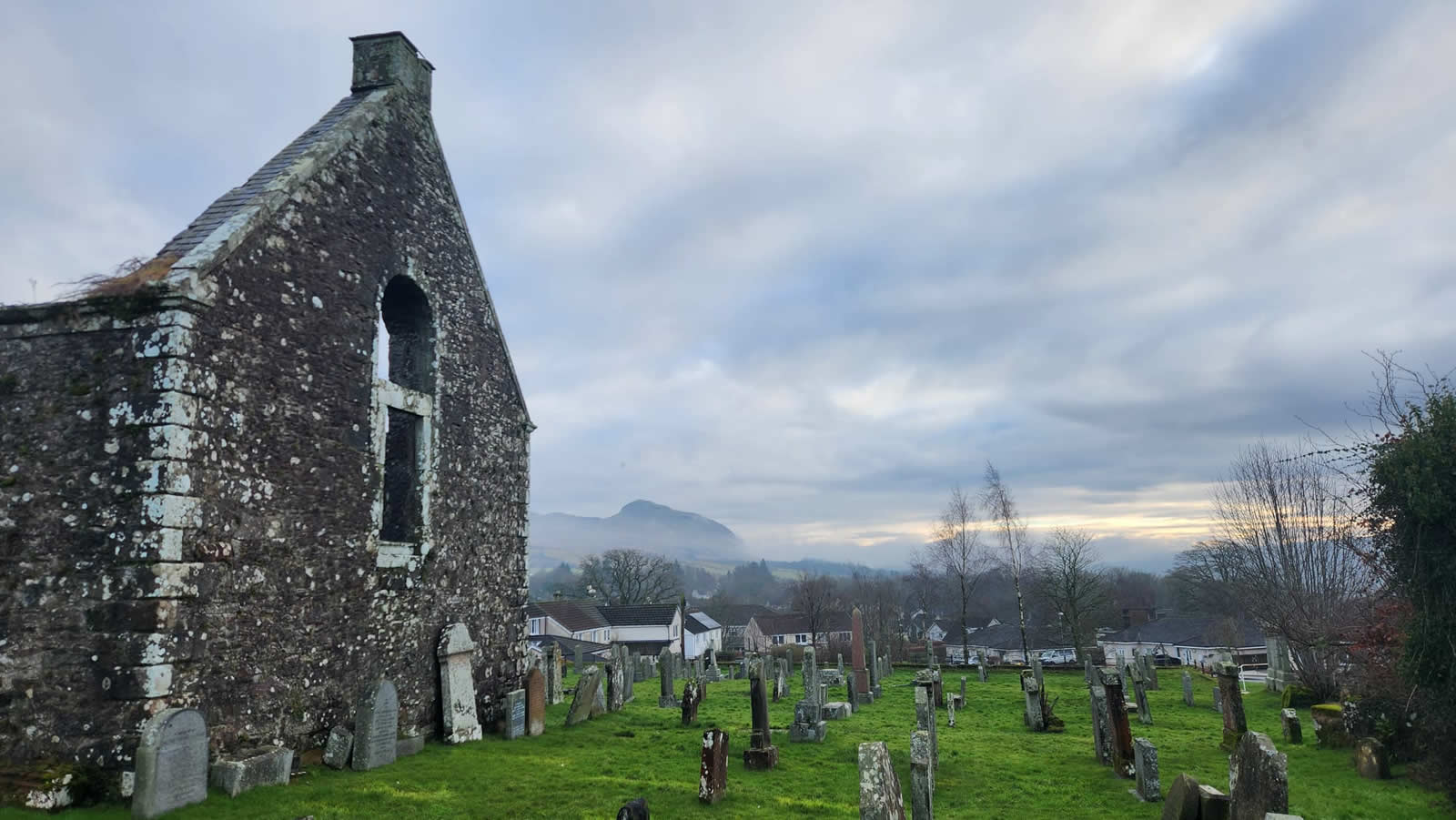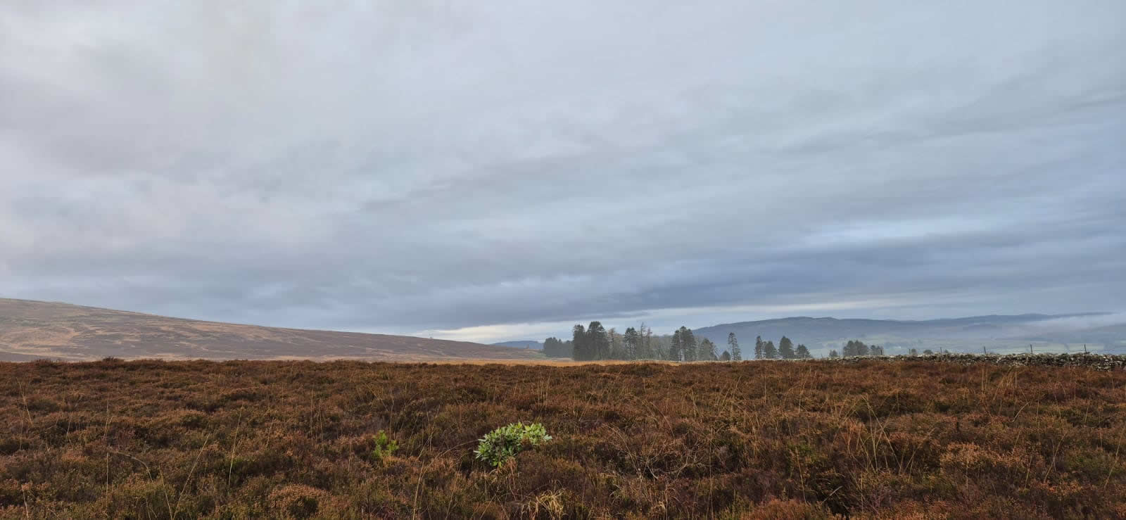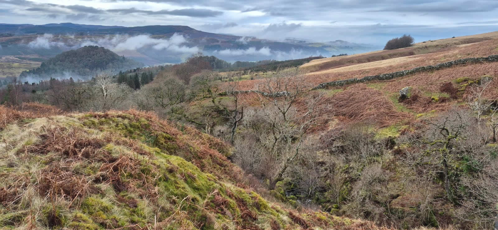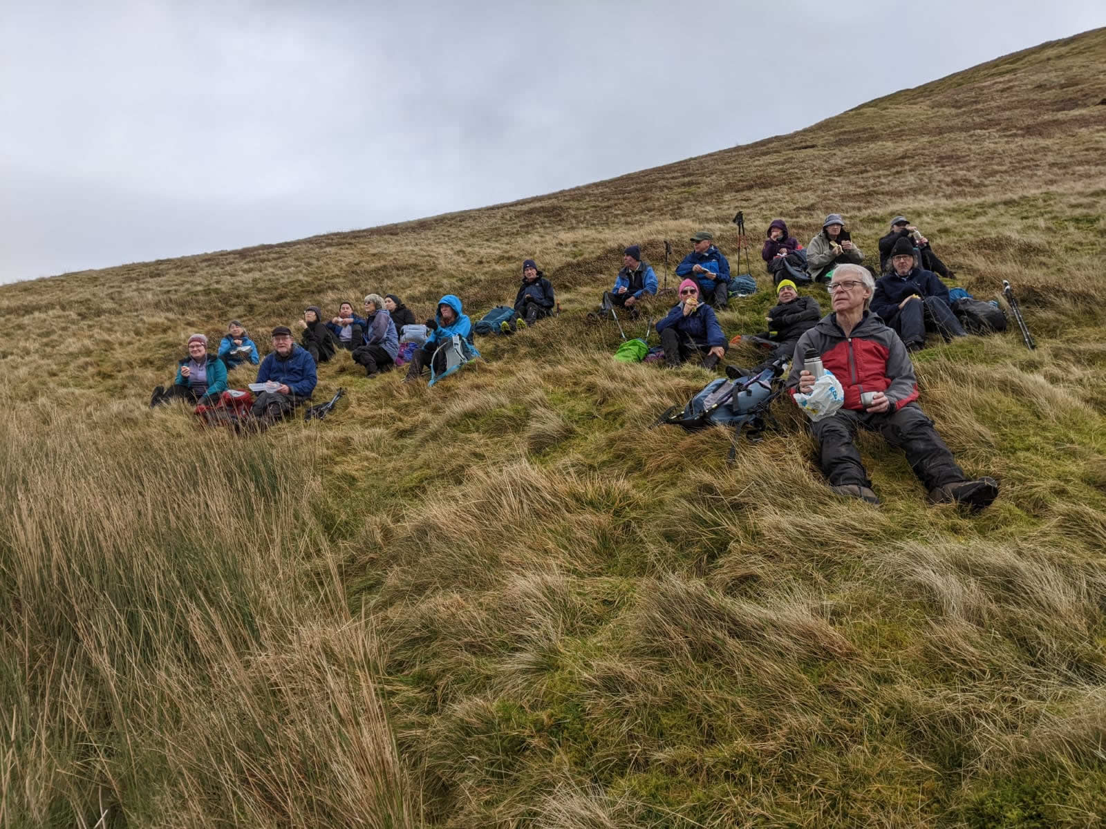 Leaving Killearn and walking through Kirkhouse Wood we ignored the right turn onto the main pipeline track and continued through the woodland alongside the boundary wall to the eastern edge of the woods to exit the woods onto the open moorland where the winter heather looked dark, almost black as it blanketed this stretch of moorland over which the narrowest of tracks, no more than a sheep-track, crossed the moorland to join up with the broader hillside path a kilometre or so away. We had left Killearn in a slight drizzle, but as we joined the hillside track and paused for a moment, confidence was growing in better weather ahead as was evidenced by the number of people discarding waterproof layers in anticipation of drier weather ahead.