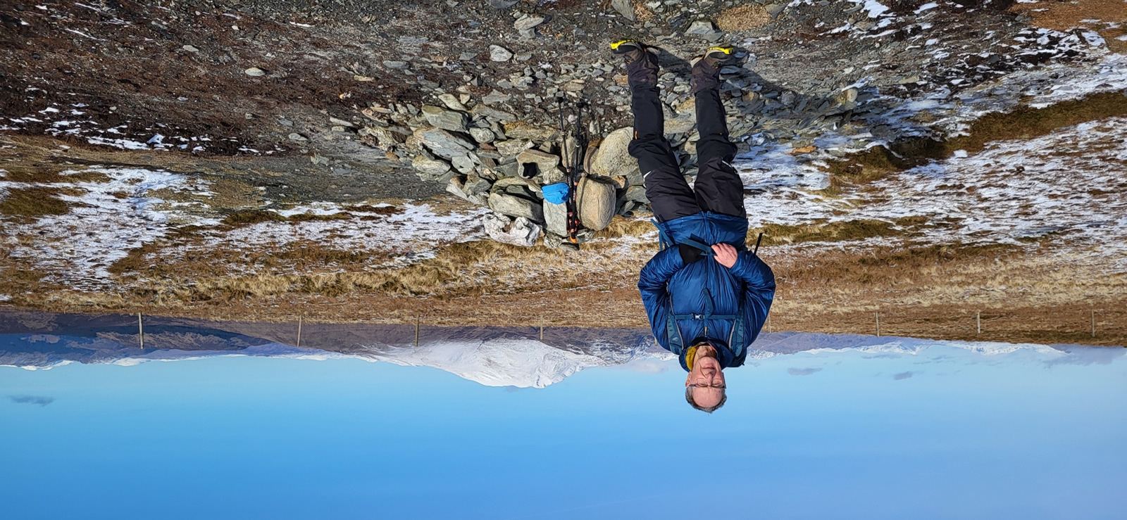 I have a favourite little spot on this summit where I can set my sit-mat on a comfortable little ridge in the ground, and after the obligatory summit photos I settle down for a coffee and energy bar and, most importantly, to just sit and enjoy the views. Wonderful.