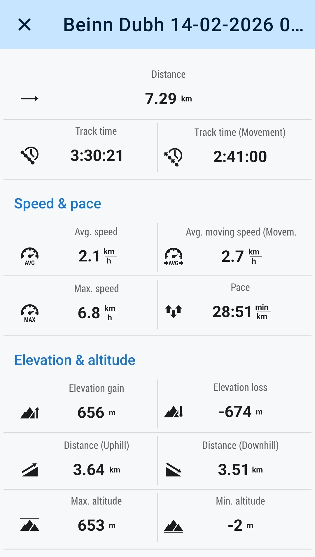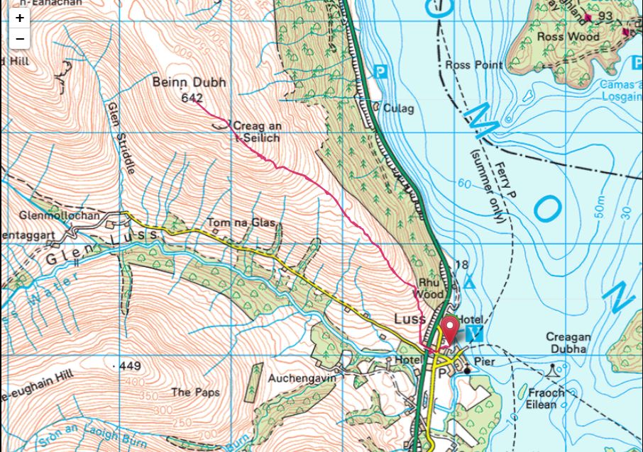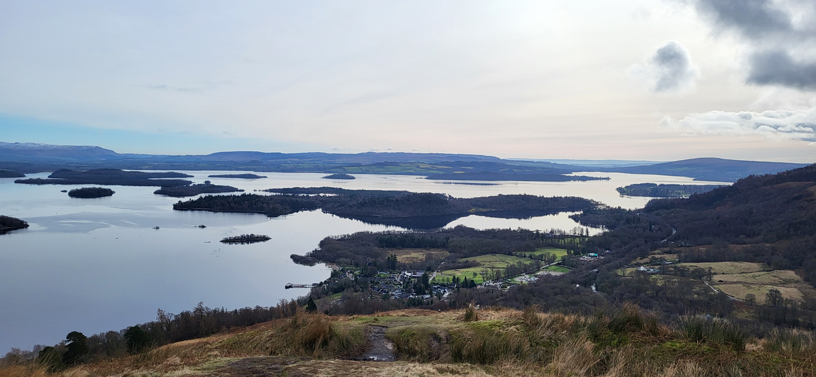 Beinn Dubh was my target for today, so I gave Mid Hill a miss and simply retraced my step back downhill to Luss to complete a short by very fine day on my “go to hill”, although I should mention if was by no means “my” hill today, as I have never seen it so busy on a winters day. My earlyish start meaning that I saw only a couple of people in the distance ahead, I think one couple passed my by, and there were a few in the distance behind. However, on my return downhill they were coming uphill at increasingly regular intervals and I could see them spread out on the track below, everyone making the best of a fine day in the middle of a mucky spell of weather. Good to see.