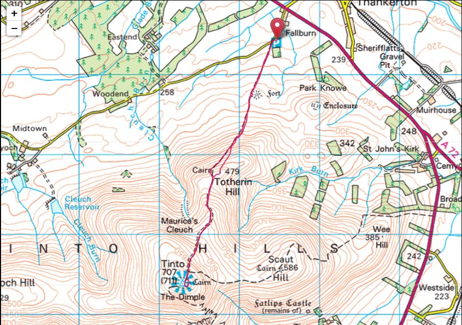 It’s rather rare for us to venture south of the River Clyde for a day in the hills, but with a fine day forecast for today, Ian suggested a trip down the M74 to Tinto, a hill we had last visited eleven years ago almost to the day on Wednesday 18th February 2015, when, along with Alan and Laurie we completed a fine round of Tinto, Scaut Hill and Park Knowe, no snow that day, but a bitter cold, windy and rainy day.