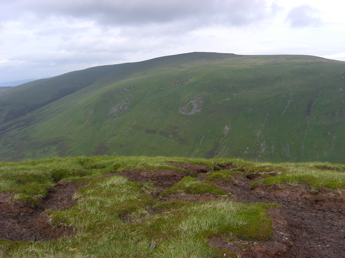 A long summit ridge of almost 3 kilometers stretches north from the cairn giving a very gently descent towards the final, and much steeper descent down to the farm buildings at Claggan. The ridge has two distinct features, firstly a great rock fissure at Bual a'Claidheimh, where a huge slice of rock has broken away from the main ridge creating a deep cleft; and secondly its peat hags, or possible more accurately its peat hag (singular) for there is almost an unbroken peat scar running along the entire length of the ridge. In dry conditions, such a we had, this was a bonus, as walking in the base of the scar was actually quite easy going, but oh what a nightmare this would be in wet conditions.